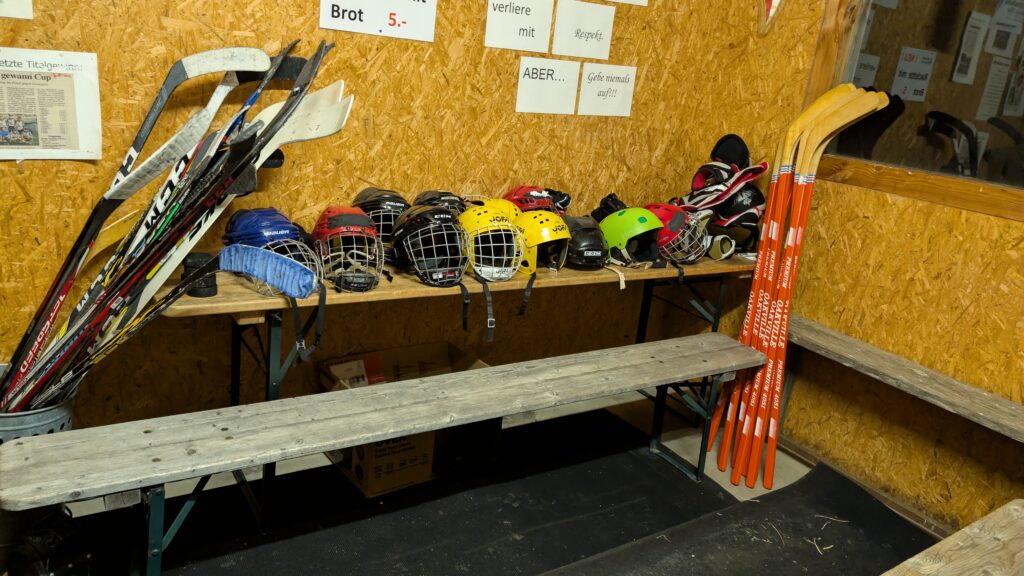 Die Schlittschuhe können bequem in der beheizten Kantine angezogen werden.
